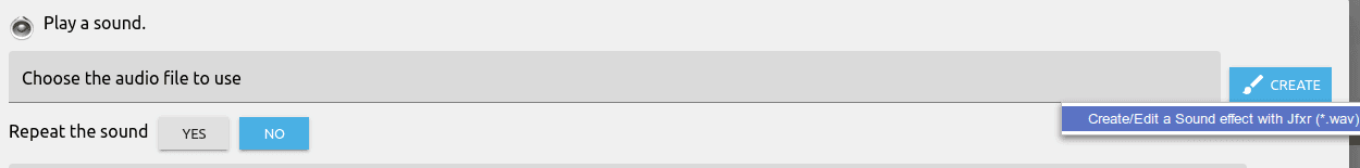 You can use jfxr instead of inputting a sound file (.wav, etc..) by clicking Create given near the parameter