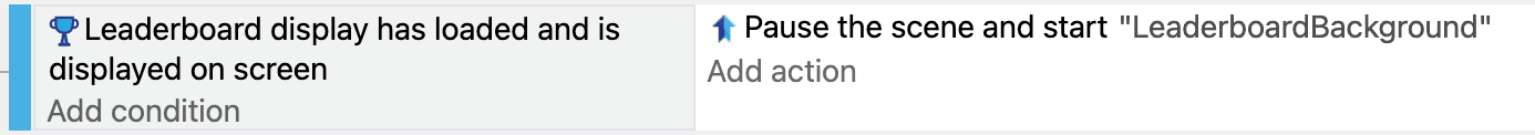 • Use the condition "Leaderboard display is loading" to trigger an action (display a text "Loading" for example)
