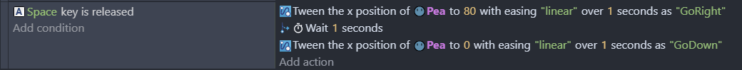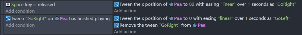 The same result can be achieved using the tween finished playing condition. This method should be used when the object may not do the second tween under some conditions.