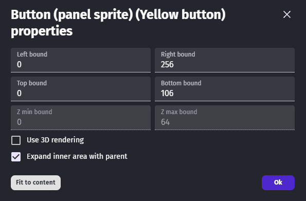 • A dialog, composed of a background, some text, some buttons. This allows to do all the logic related to this dialog inside the custom object events, without cluttering the scene events.