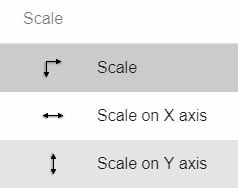 • Scaling of the object can be changed. There are three options: "Scale" (constrains proportions to scale on both X and Y axis), "Scale on X axis" (width), and "Scale on Y axis" (height).
