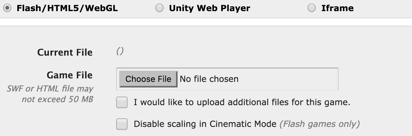 type since our game is a HTML5 package. Select the I would like to upload additional files for this game