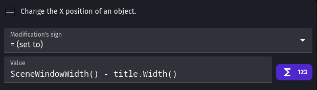 To change this, GDevelop comes with an Alignment action. Simply set it to left, center or right to change the alignment of your multi-line text.