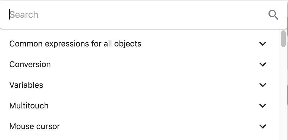 When you click the blue icon, you can search all the available expressions sorted into categories.