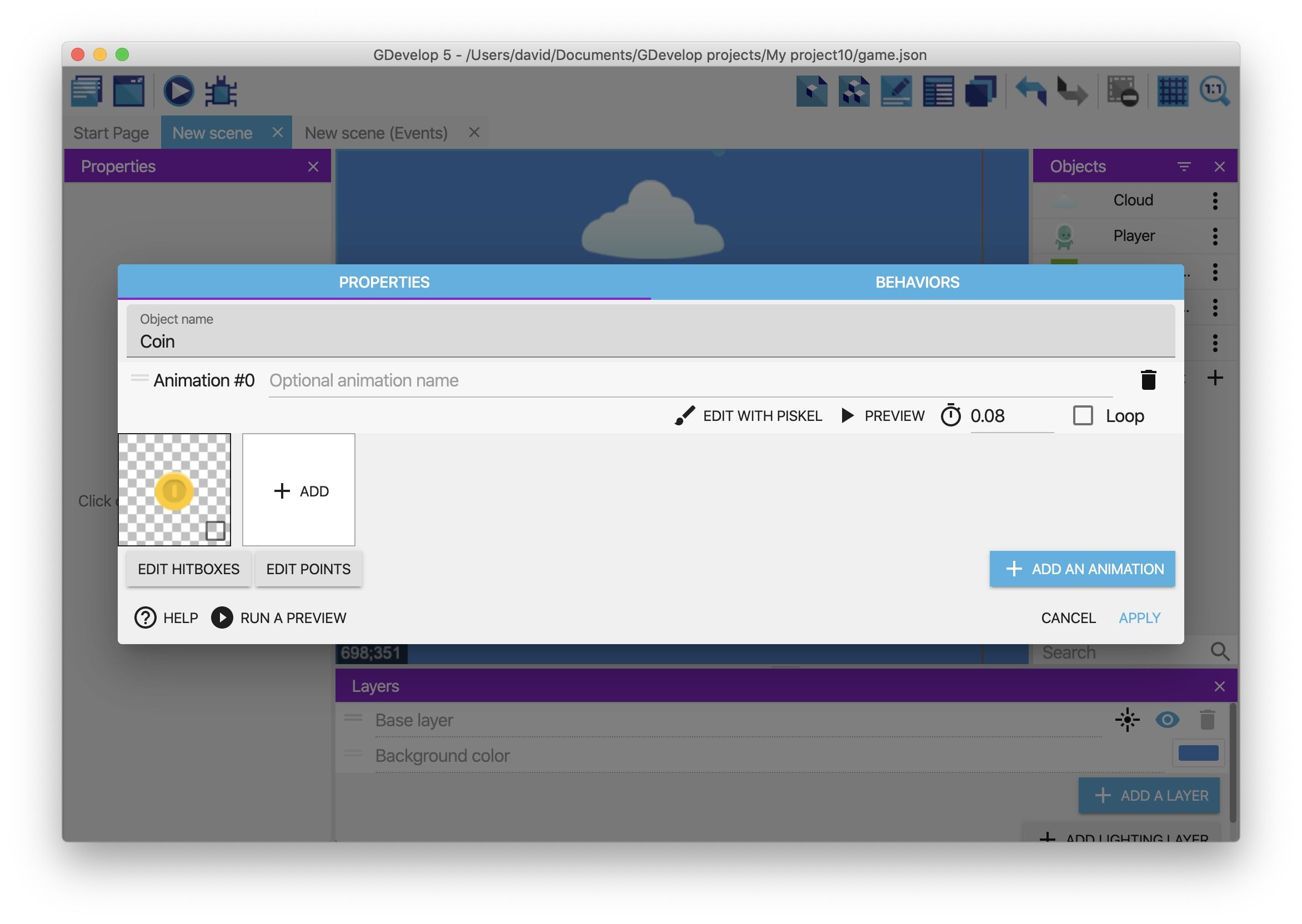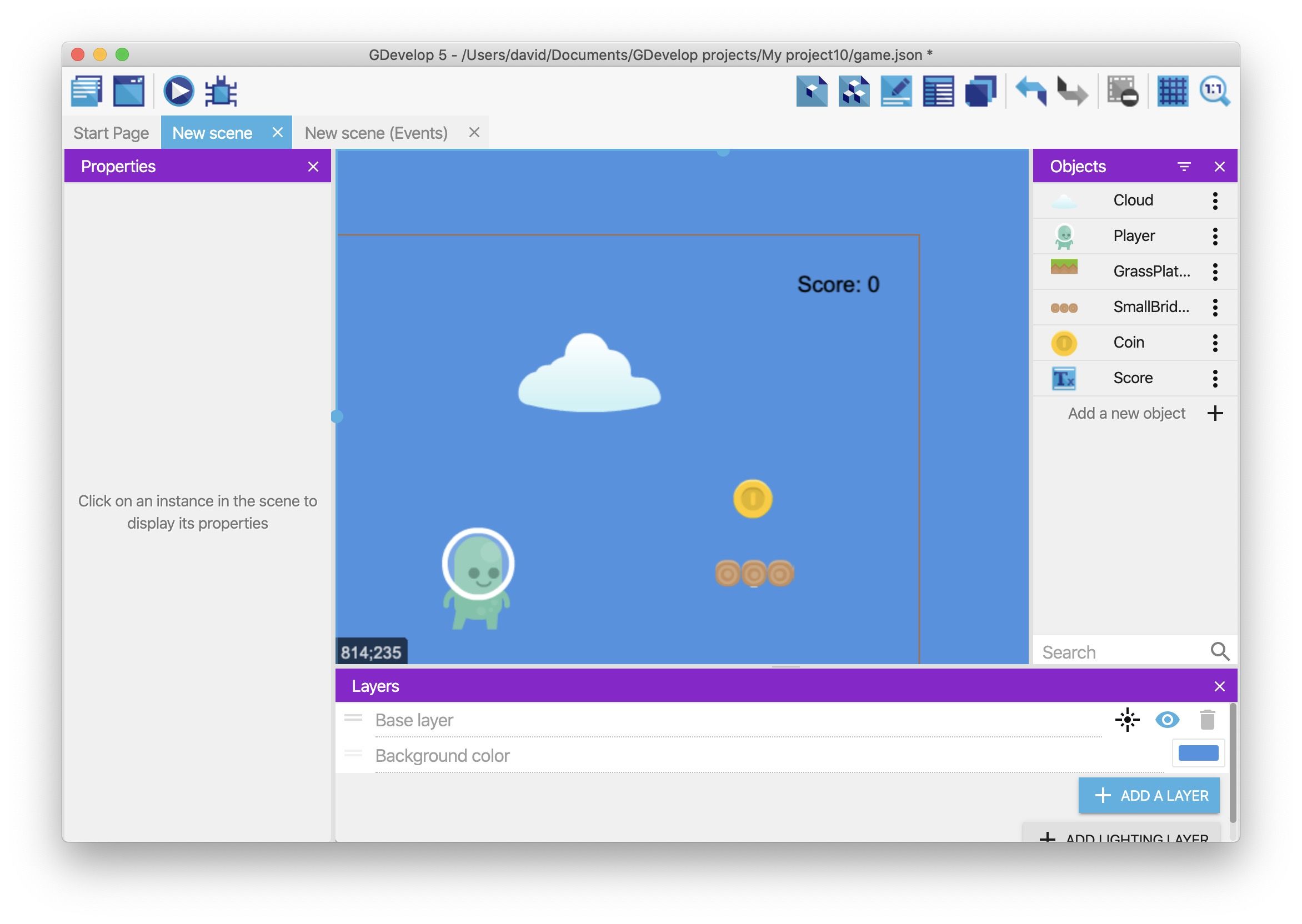 The first step is to create a coin that the player can collect. You can break this step into two parts: creating an object for the coin and then making the coin collectible by using an event to detect when the player collides with it.